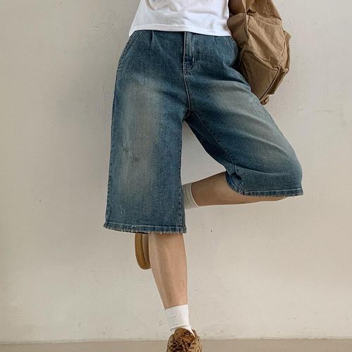 [옷자락]여자 버뮤다팬츠 구제 캣워싱 청반바지