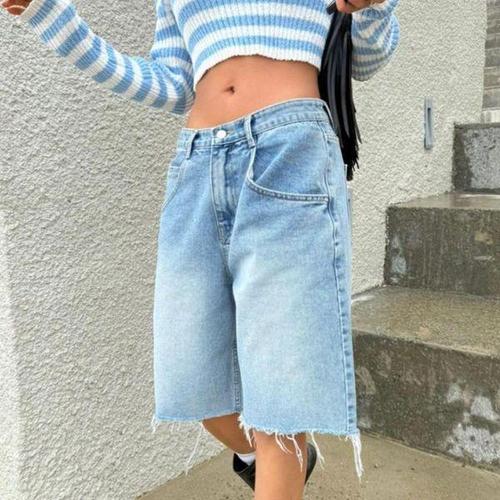 여자 구제 밴딩 워싱 썸머 데님버뮤다 청반바지