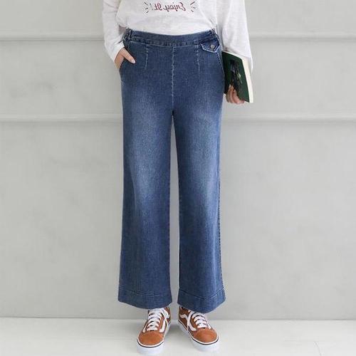 [옷자락]여성 긴기장 와이드핏 데님팬츠 구제워싱