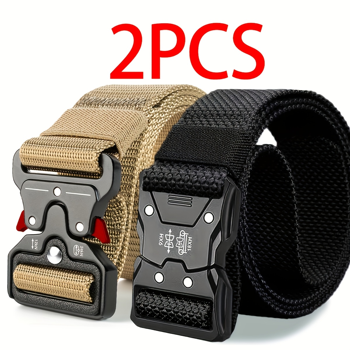 TEMU 2개입 남성용 퀵 릴리스 벨트 (잠금 버클 시스템) | 캠핑, 캐주얼 및 포멀 웨어에 적합, 청바지 및 바지 호환, 8가지 색상으로 제공