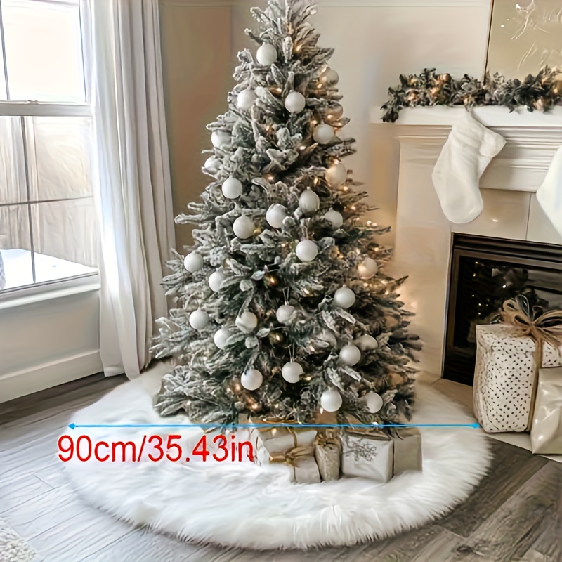 TEMU 초장한 흰색 인조 모피 크리스마스 트리 스커트 - 23.62"/35.43"/47.24" 드로스트링 잠금 장치가 있는 초장한 트리 스커트, 대형 트리용 부드러운 플러시 원단, 크리스마스 트리 장식, 파티 장식, 우아한 장식, 내구성 좋은 장식, 크리스마스 트리스커트, 트리 받침스커트, 트리치마, 빈티지 스타일 깔끔한 스, 진저브레드트리스커트