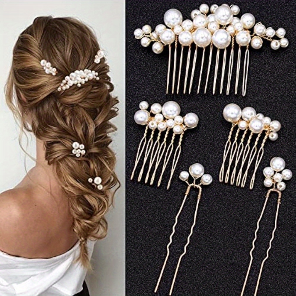 TEMU 5pcs 금색 신부 웨딩 헤어 커브, 진주와 꽃으로 장식된 신부와 신부의 친구들을 위한 빈티지 헤어 액세서리 보석