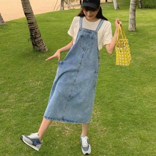 여성 귀여운 데님멜빵원피스 빈티지 멜빵스커트 데님 청 멜빵 원피스