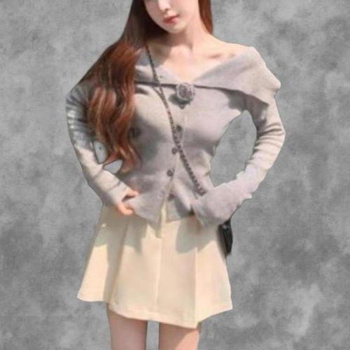[다잇템][다잇템] 여성 장미 골지 단추 브로치 볼드숄더 귀여운 가디건_23541105_588872