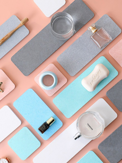 [브리스크스타일] 욕실 흡수 컬러 스퀘어 라운드 규조토 코스터 패드