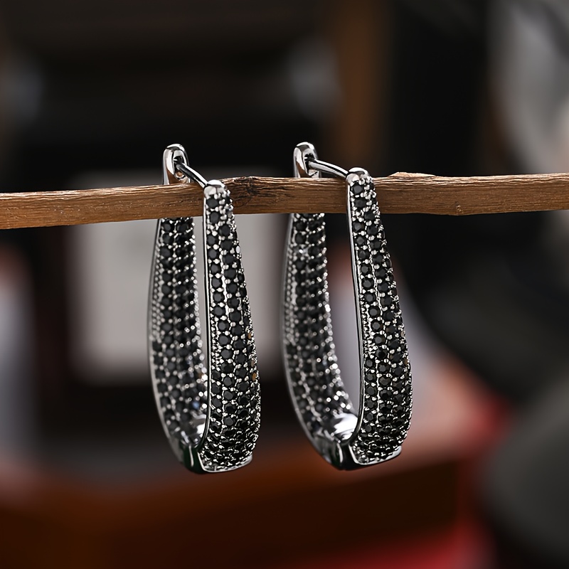 TEMU 패셔너블 건 블랙 합성 지르코니아 스터드 귀걸이, 청소년용