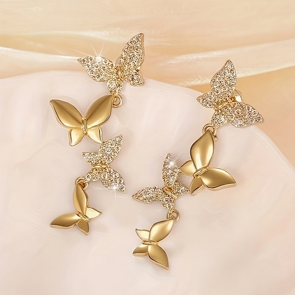 TEMU 반짝이는 지르코니아가 달린 우아한 나비 태슬 드롭 귀걸이 - 니켈 프리 구리, 결혼식 및 파티에 완벽함