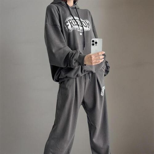 [옷자락]여성 가을 후드티 포켓 프린트 카큰녀 트레이닝 바지 세트
