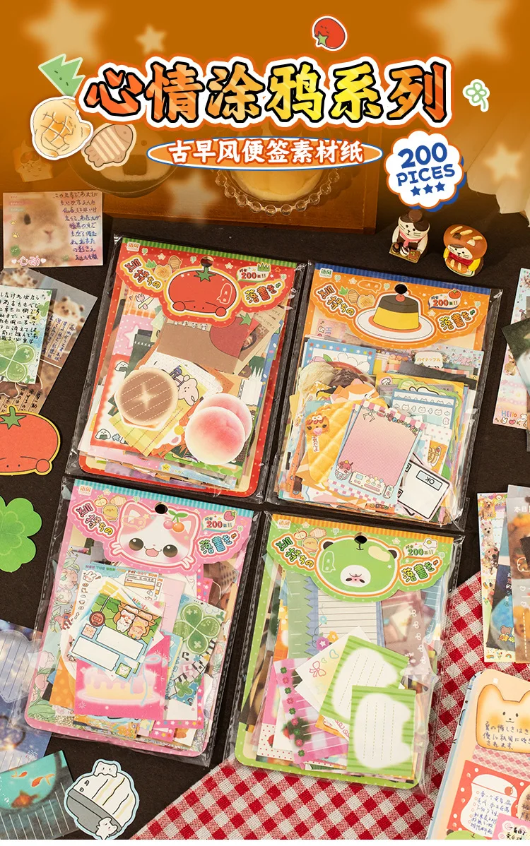유시안 200매 스티키 노트 세트 고대 스타일 감정 그림 시리즈 다용도 DIY 스크랩북킹 기본 메시지 노트