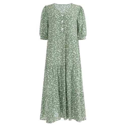 [샵앤]나염 퍼프소매 반팔 플레어 롱 원피스 RC-WDR-11994-그린