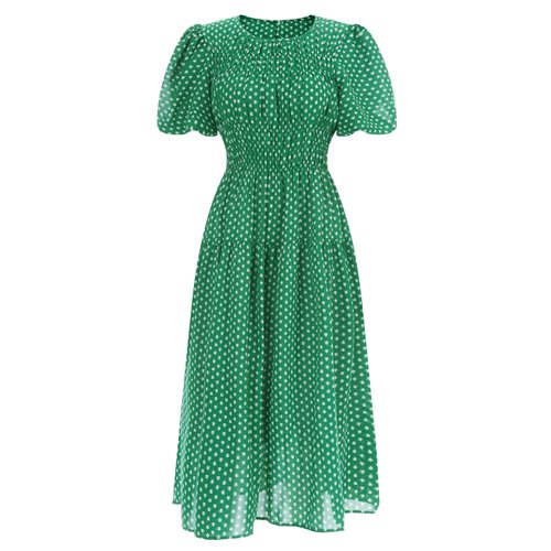 [샵앤]스모크밴딩 라운드 퍼프소매 데일리 여성 반팔 롱원피스 RC-WDR-11994-그린