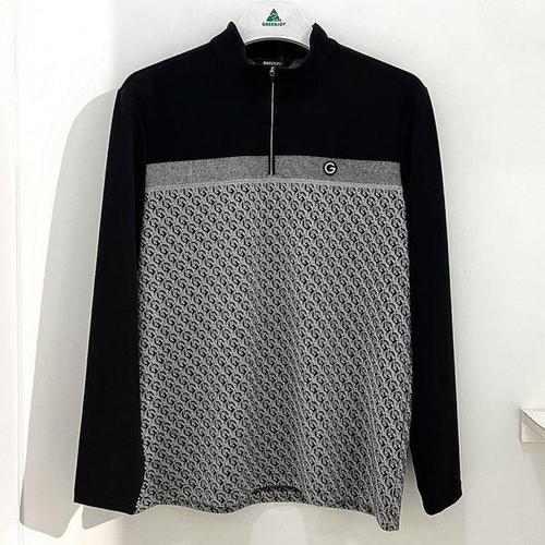 [그린조이]JQD배색 모크넥 하프집업 티셔츠 블랙 남성 GF24KL52M