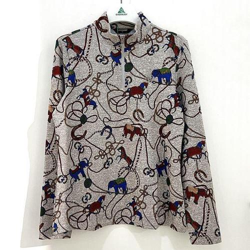[그린조이]체인프린트 하프넥 반집업 긴팔 티셔츠 연베이지 여성 GF24KL32W