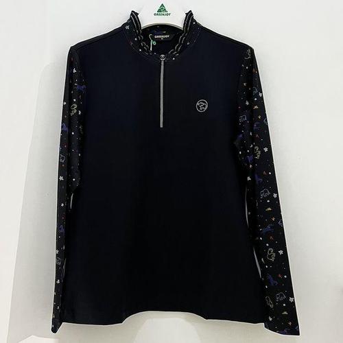 [그린조이]소매 프린트 셔링 반집업 긴팔 티셔츠 블랙 여성 GF24KL28W