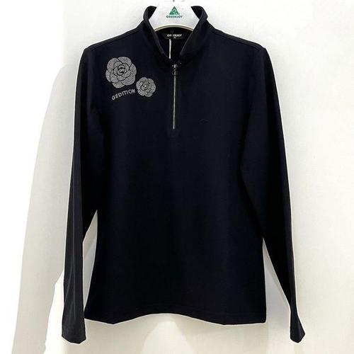 [그린조이]장미 핫픽스 장식 하프넥 반집업 티셔츠 블랙 여성 GM24KY61W