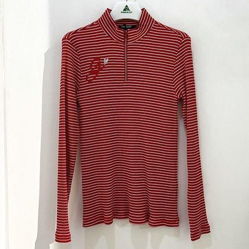 [그린조이]스트라이프 하프넥 반집업 티셔츠 레드 여성 GF24KL25W