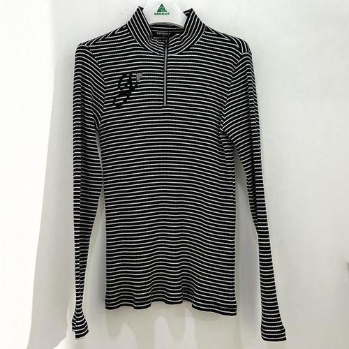 [그린조이]반목 스트라이프 반집업 티셔츠 블랙 여성 GF24KL51W