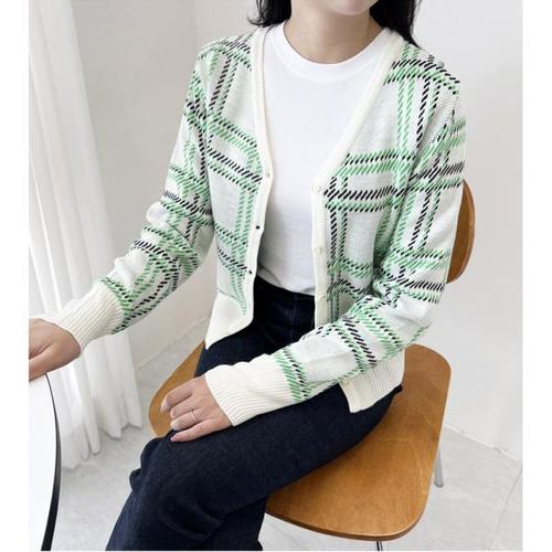 [리빌모아]여자 아가일 니트 가디건 블라우스 자켓 원피스 트위드자켓 여성가디건DJW-CA-SUND5027-그린