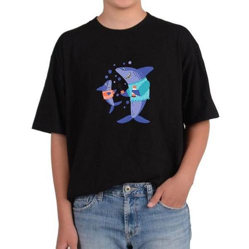 [에이치플러스몰]길단 반팔 USA핏 상어엄마 상어아이 식사시간그림 다양한색상 전사이즈