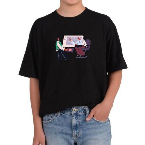 [에이치플러스몰]길단 반팔 USA핏 보이스 영상 패드수업 원격수업 CLASS 대학그림 다양한색상 전사이즈