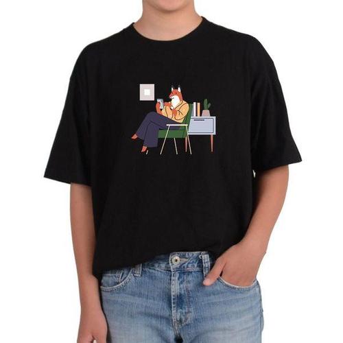 [에이치플러스몰]오버핏반팔티 핸드폰 모바일폰 여우 책상 그림 모든사이즈