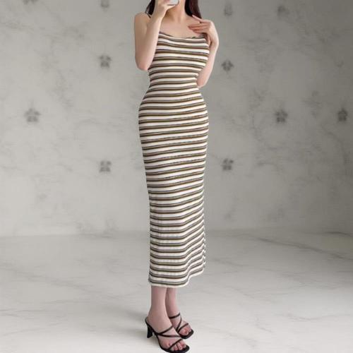 여성 캡내장 단가라 어깨끈 글램 슬림핏 드레스