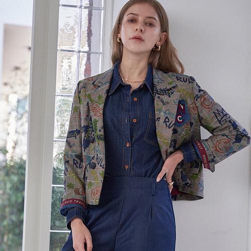 [르니앤맥코이]글렌 레터링 롤업 배색 체크 자켓 MM10JK208