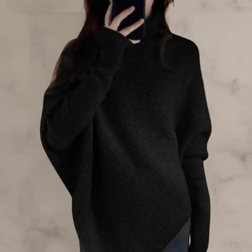 [다잇템]여성 긴팔티 비대칭 기모노핏 폴라넥 니트