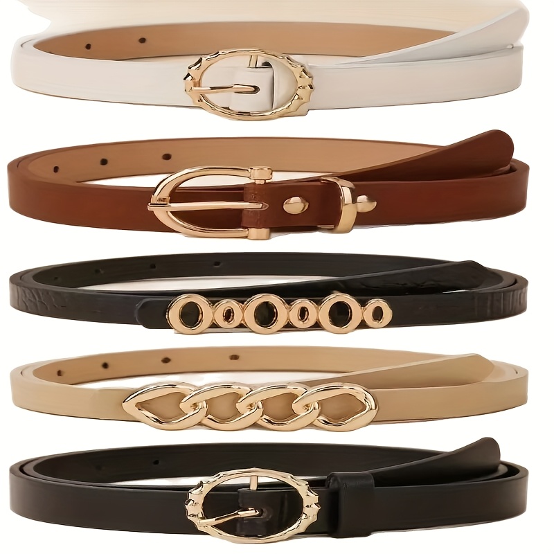 TEMU 여성용 심플하고 활용도 높은 슬림 허리 원피스 5벌 세트, 정장 및 PU 벨트 장식.