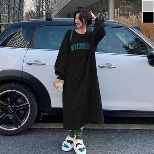 [엄지척]빅 기모 데일리 레터링 롱 보온 원피스 베이직 스타일_19953394_667501