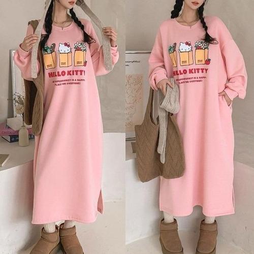 따숩 기모 루즈핏 맨투맨 롱 원피스