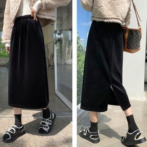 [엄지척]밴딩 치마 기모안감 롱 스커트 일자핏 뒷트임_19957018_667501