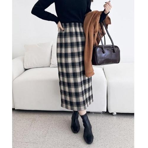 [엄지척]뒤트임 여성 기모 롱스커트 H라인 겨울 체크 치마_19949341_667501