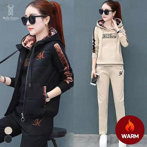 3종세트 벨라도나 겨울 여성 두툼한 패딩조끼+기모후드티+기모바지 Bon-2618