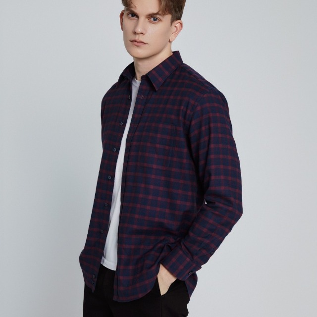 따뜻한 피치 기모와 부드러운 착용감의 겨울 버건디 체크 플란넬 셔츠