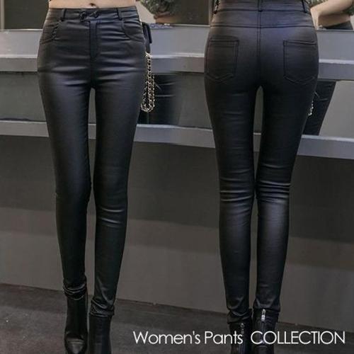 투버튼 여성 스키니 기모 가죽바지 인조가죽 레자팬츠