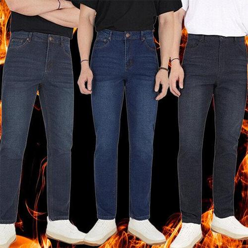 TIMEPURE 남성용 청바지 부드러운 기모 안감 남자 데님 팬츠 가을겨울 두꺼운 기모청바지 스트레이트핏 멋진 미국식 빈티지 캐주얼 긴바지