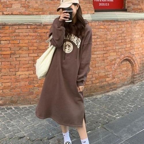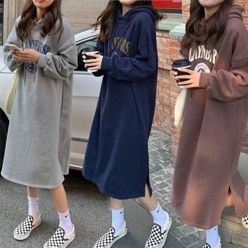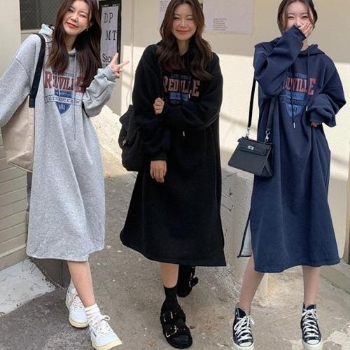 [엄지척]여자 영문 레터링 옆트임 따뜻 기모 안감 후드 원피스_19952036_667501