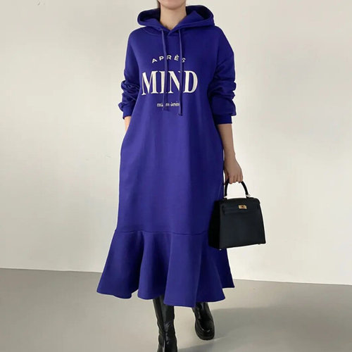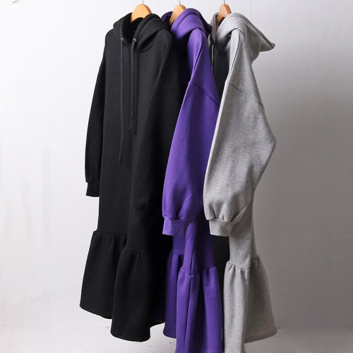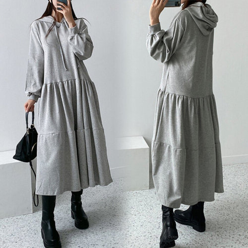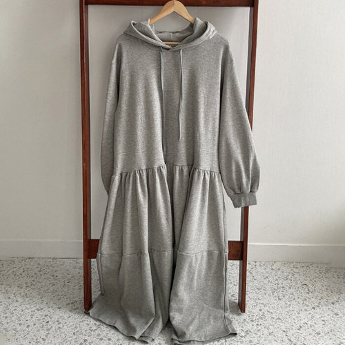 기모 루즈핏 후드 롱 원피스 DHH-B100