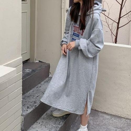 [엄지척]밑단 절개 디자인 여성 캐주얼 기모 안감 후드 원피스_19957990_667501