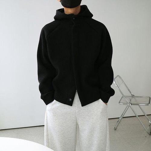 [코아라]겨울 바라클라바 기모 남성 후드가디건 두꺼운 숏니트