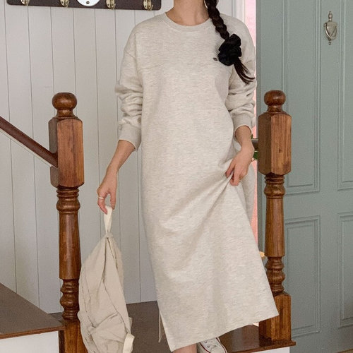 플러리싱 / 빅사이즈 기모 절개 펜던트 맨투맨 롱원피스 플러리