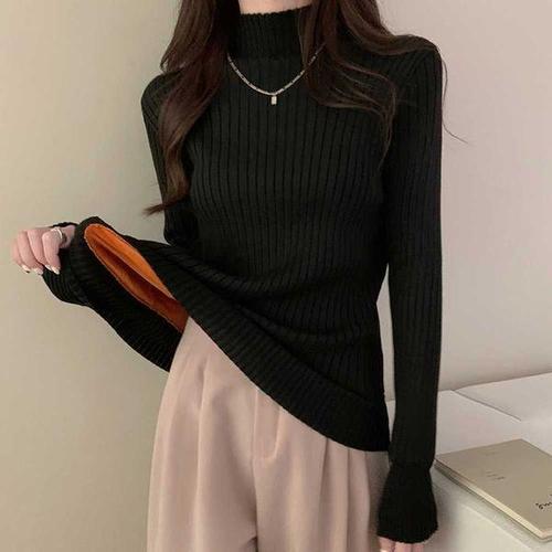 [에이치플러스몰]기모 골지 목폴라 니트 티셔츠 슬림핏 터틀넥 스웨터