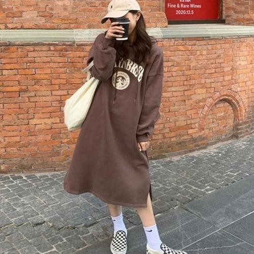 [엄지척]데일리 심플 일상룩 치마 프린팅 기모 롱 후드 원피스_19909970_667501