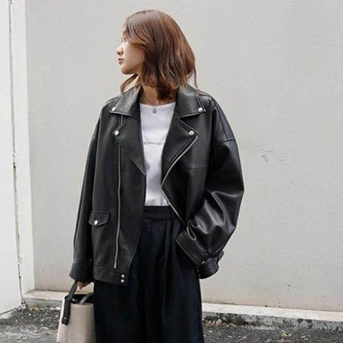 여성 유광 기본 라이더자켓 군더더기없는 가죽자켓