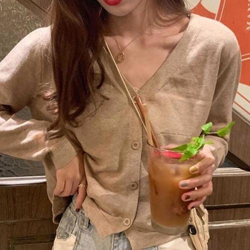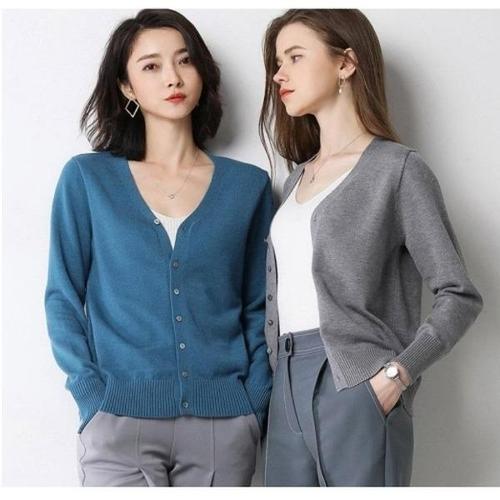 [센트럴몰]V넥 버튼 니트 가디건 여성 기본 크롭 탑