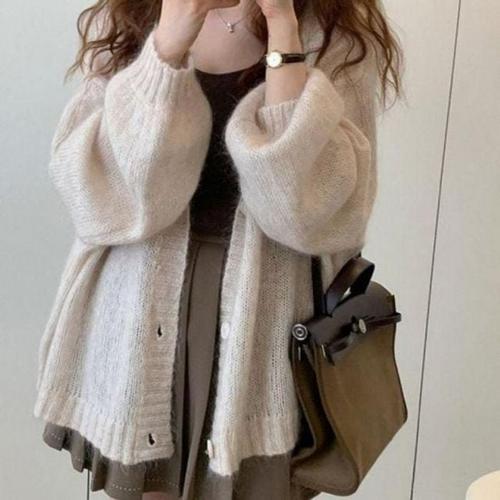 [모노폴로지]출근기본템 어깡절개 클래식 라운드 니트가디건 오버핏 겨울 가디건코디 두툼 미니멀 6컬러