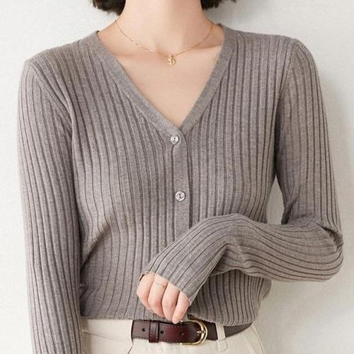 NUNUHANA 여성 베이직 스판 브이넥 니트 가디건