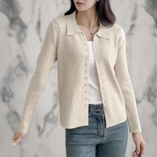 [옷자락]여성 잔골지 카라 니트 버튼 기본 가을 긴팔 가디건
