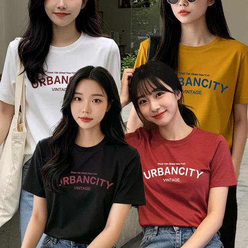 여성 기본 라운드 영문 반팔 라운드 티셔츠 URK-131